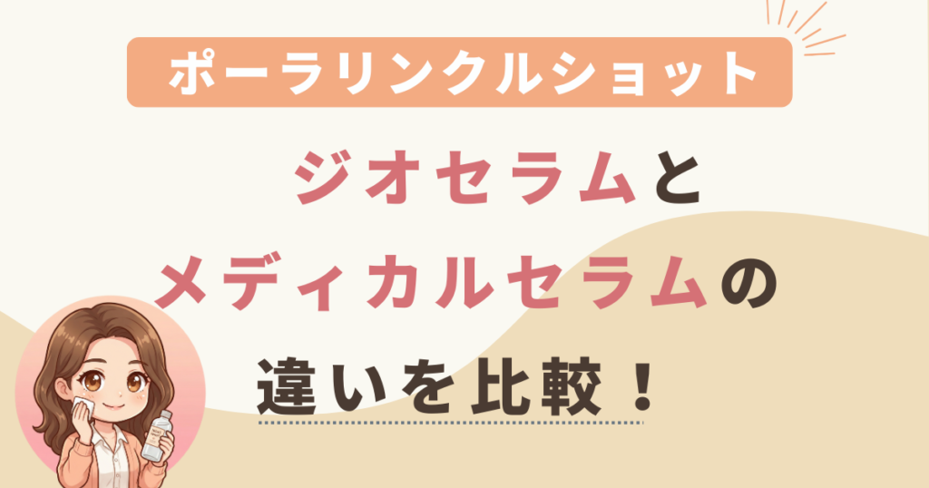 ポーラリンクルショットジオセラムとメディカルセラムの違いを徹底比較!顔全体のハリ・弾力を出すならジオセラム、今あるシワを改善するならメディカルセラム。成分、効果、使用感の違いを解説し、あなたにおすすめの選び方を紹介します。